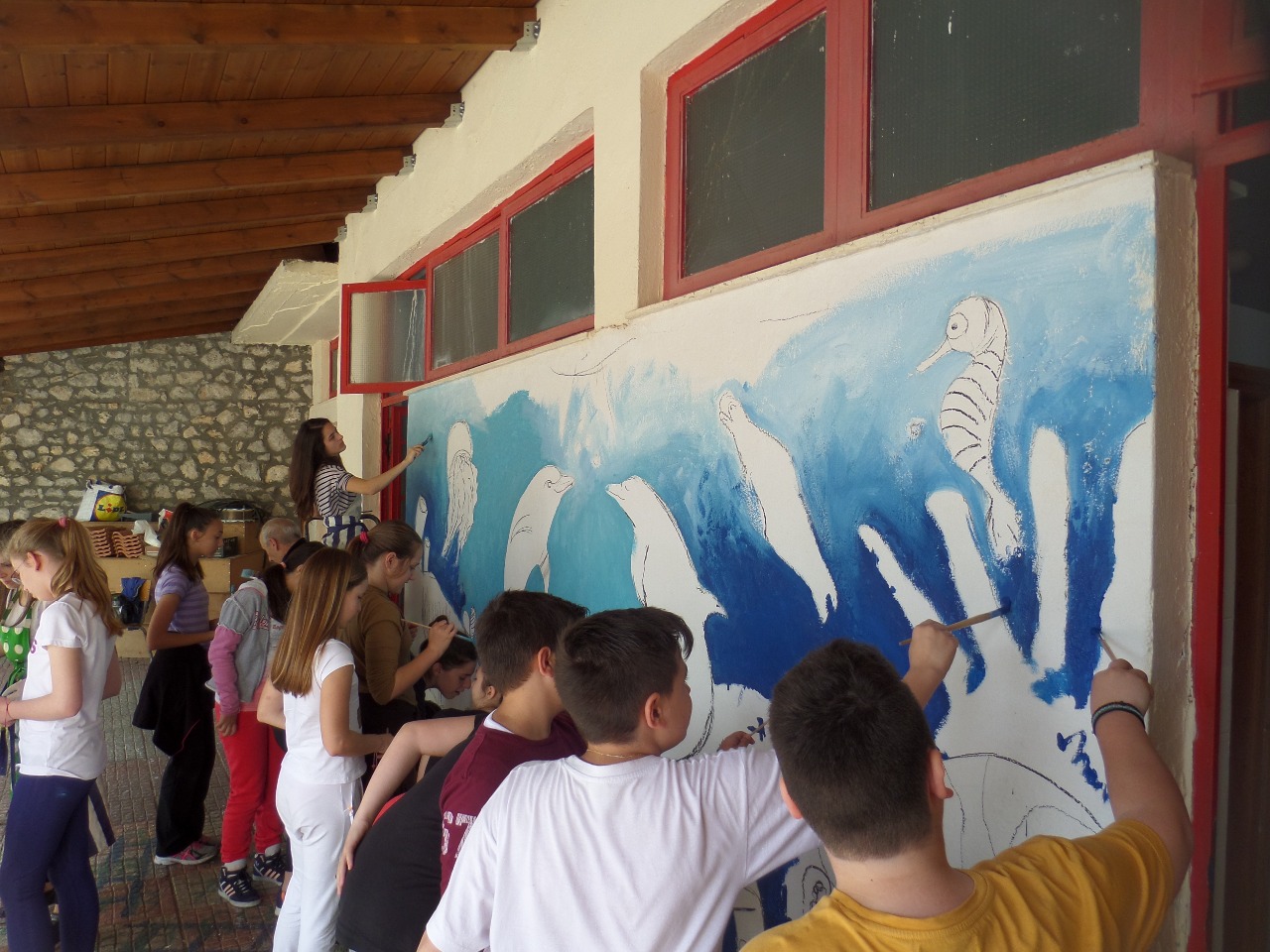 Στα πλαίσια του Προγράμματος της ΕυρωπαΪκής Ένωσης "Let ΄s do it" που αφορά στον καλλωπισμό Δημόσιων χώρων και κτιριακών εγκαταστάσεων, τα Εικαστικά Εργαστήρια του Δήμου Λαμιέων με επικεφαλής τον Διευθυντή τους κ.Δημήτρη Λάμπρου και με τη συμμετοχή των μαθητών της ΣΤ΄τάξης, έκαναν μια εικαστική περέμβαση στον προαύλιο χώρο του σχολείου μας.